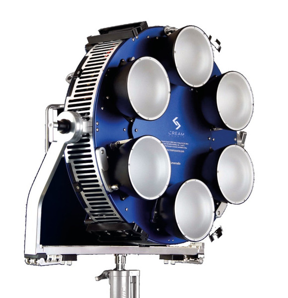 The powerful and versatile SpaceX RBGAW Color LED Light from Creamsource is a 1200W light instrument made up of an array of six powerful LED engines operating in a compact circular form factor. With a CRI of 95 through its 3200K to 6500K range, it provides superb color rendition, and then adds full RBGAW hue and saturation capabilities for millions of available colors. The efficient RBGAW LEDs provide an extended color temperature range from 2200K to 15,000K with a full stop of green/magenta control.